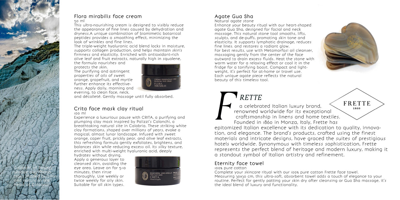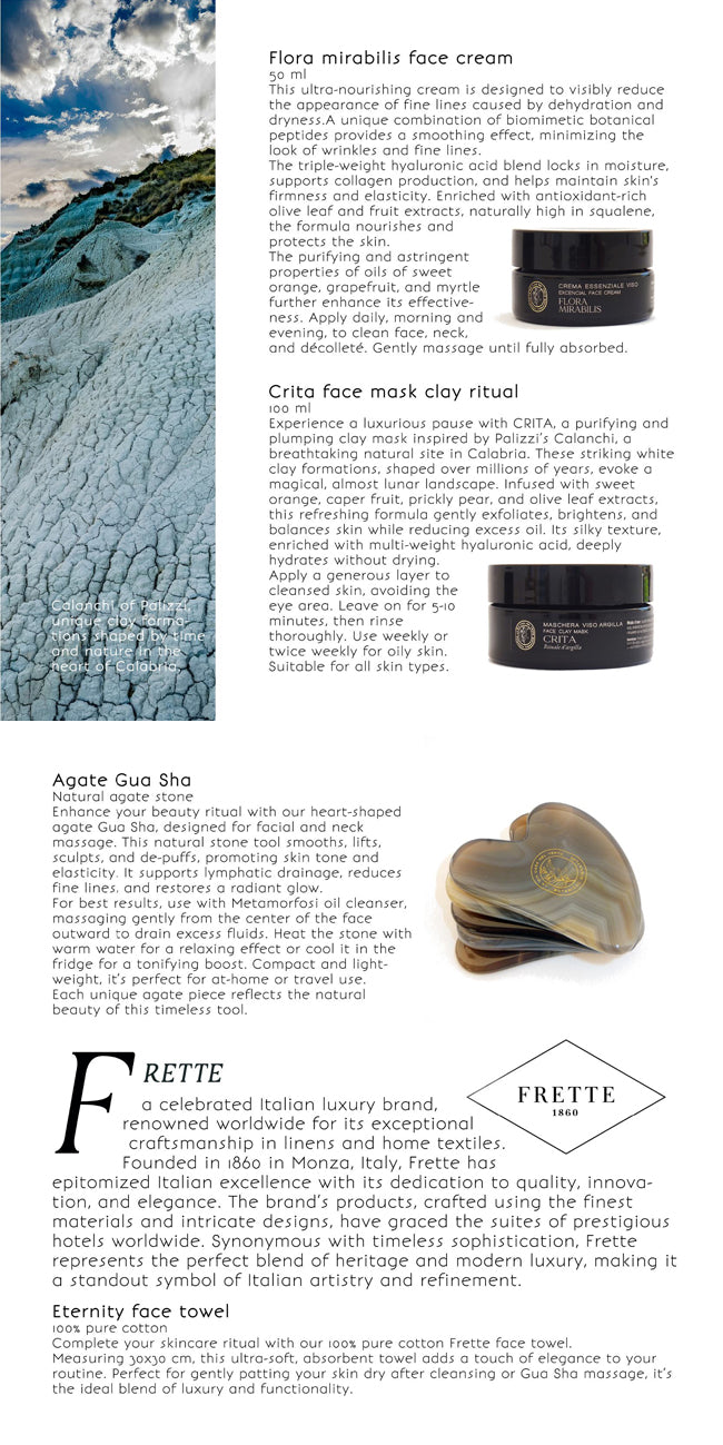 Brand: LaMiaCasaNelVento (skincare products), Frette (face towel).